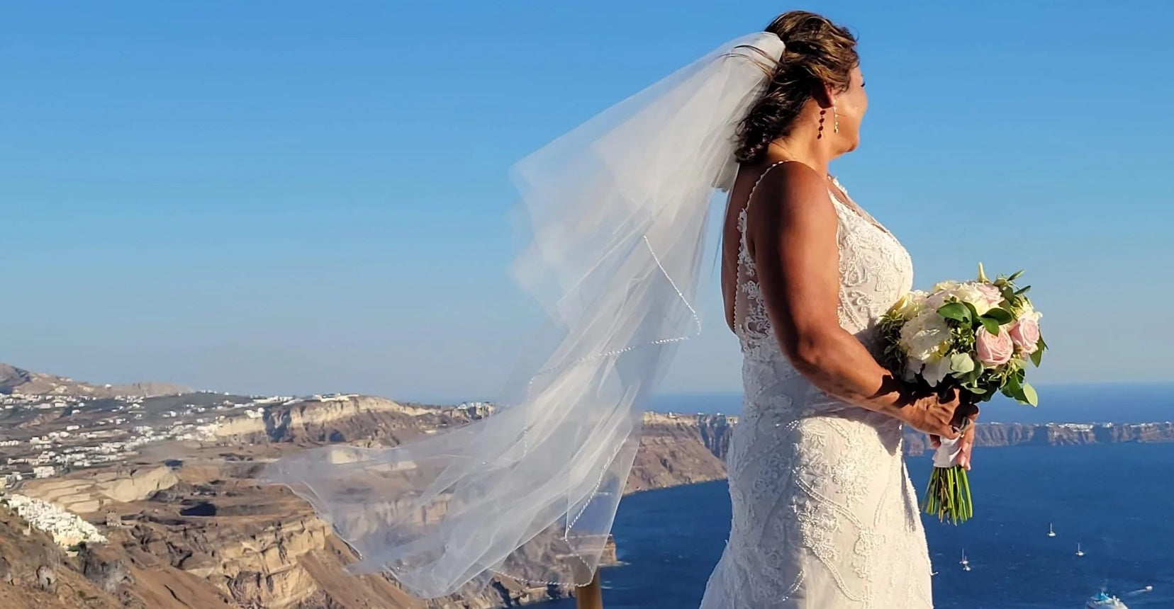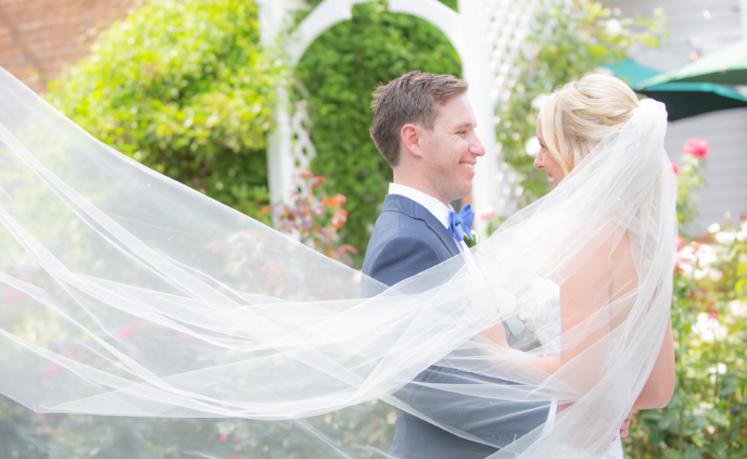 "Because my gown had so much lace, sequins, and beading, I wanted a simple veil with just a little sparkle on the edge.